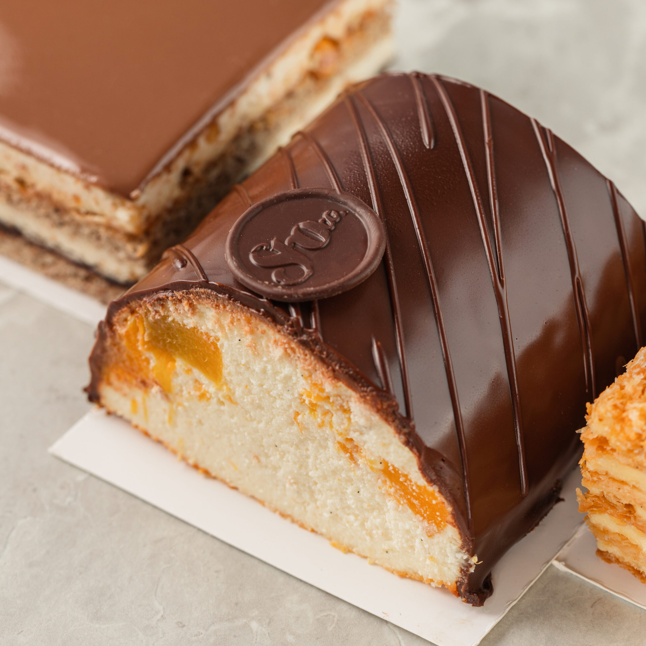 класичний сирник з персиком, цедрою та шоколадною глазурʼю